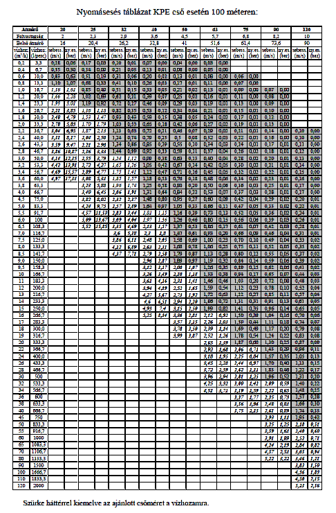 Ha a ház messzebb van a kúttól vagy több szintes, akkor nagyobb nyomásra van szükségünk, ebben az esetben jól jön valamennyi nyomástartalék. Érdemes figyelembe venni a surlódási veszteséget amennyiben vékony csövön keresztül nyomjuk, úgy nyomási veszteséggel is kell számolni. Az alábbi táblázat ebben lehet segítségére: